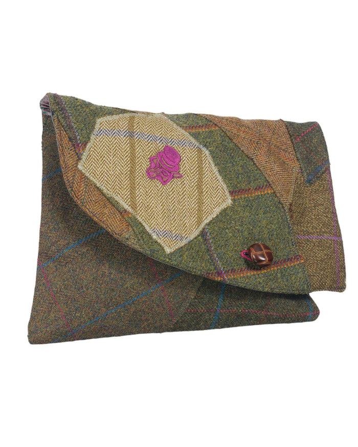Blue Tweed Fingerless Mittens with plum fleece lining