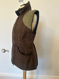 The prototype for our current ladies shooting gilet - this gilet is made with a tweed that has now been discontinued so is completely unique.