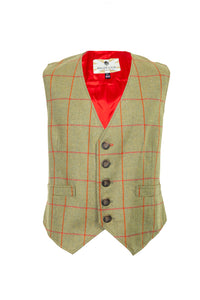 New from Maude and Fox - look dapper in the Finch mens tweed waistcoat with tweed on the front and the back lined with a red satin.