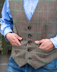 Scottish Houndstooth tweed makes this waistcoat a stylish staple for any occasion - with jeans with shorts?? Under a shooting jacket .... Super stylish and very British.
