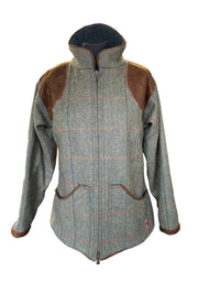 Made with a beautiful tweed from Scotland, with a high collar and low back to beat the draughts and create a flattering profile, suede trims to cuffs and collar, large front pockets for cartridges or phone/keys probably even fit a dog lead. Lined with fleece.