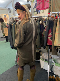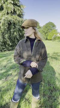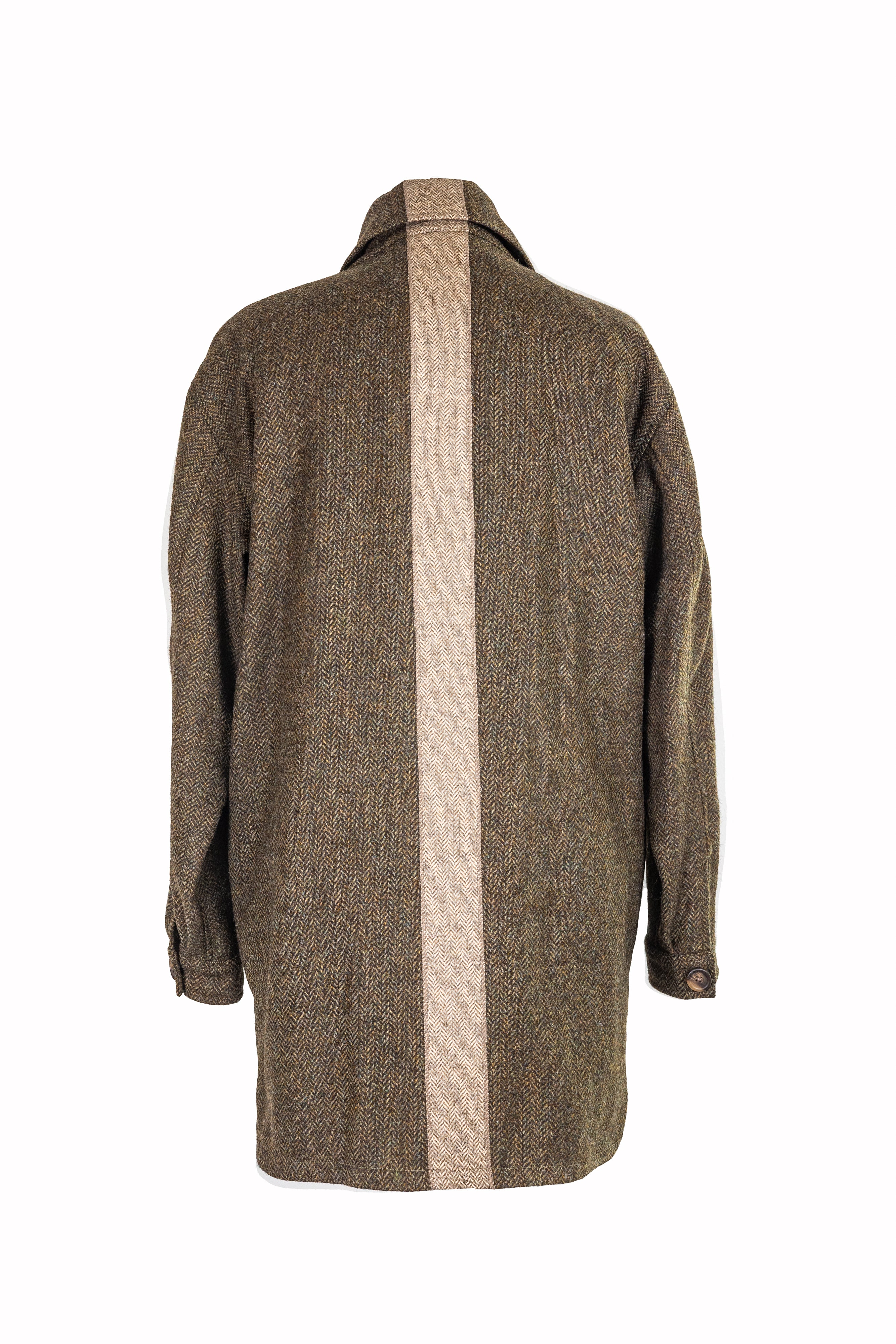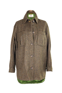The Tweed Shacket is made with a beautiful tweed from Yorkshire and fully lined with green satin. With a stripe in oat tweed down the back to add that little bit of quirky chic. A collar to wear down or turned up , front breast pockets are so useful for keys or phone and hand pockets on the sides allow for a streamlined look.